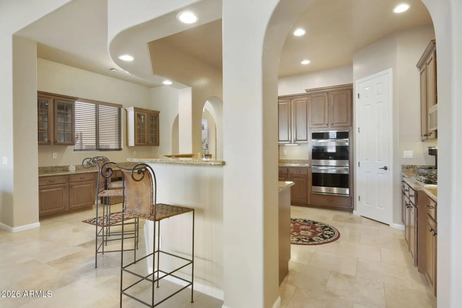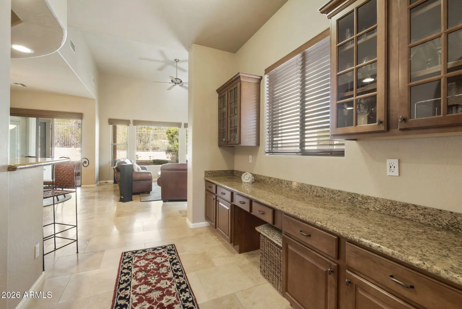 A RARE opportunity for a SINGLE LEVEL TURNKEY home in gated Legend at Pointe Tapatio Cliffs! This well-maintained home with NO STEPS and new roof offers a highly desirable layout with 3 bedrooms, 2.5 baths, soaring 12' ceilings & clerestory windows that fill the home with natural light. The kitchen combines timeless style and practicality with granite countertops, warm wood cabinetry, gas cooktop & newer appliances, opening seamlessly to the living/family areas for easy entertaining. A thoughtful split-bedroom design provides excellent privacy, and ample closets add everyday functionality. Enjoy a truly special setting backing to the Preserve with direct access to hiking trails and a community pool and spa surrounded by stunning views. Mountain living just 5 minutes from central Phx!
