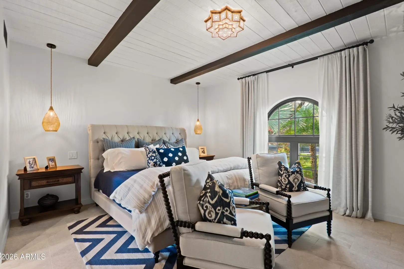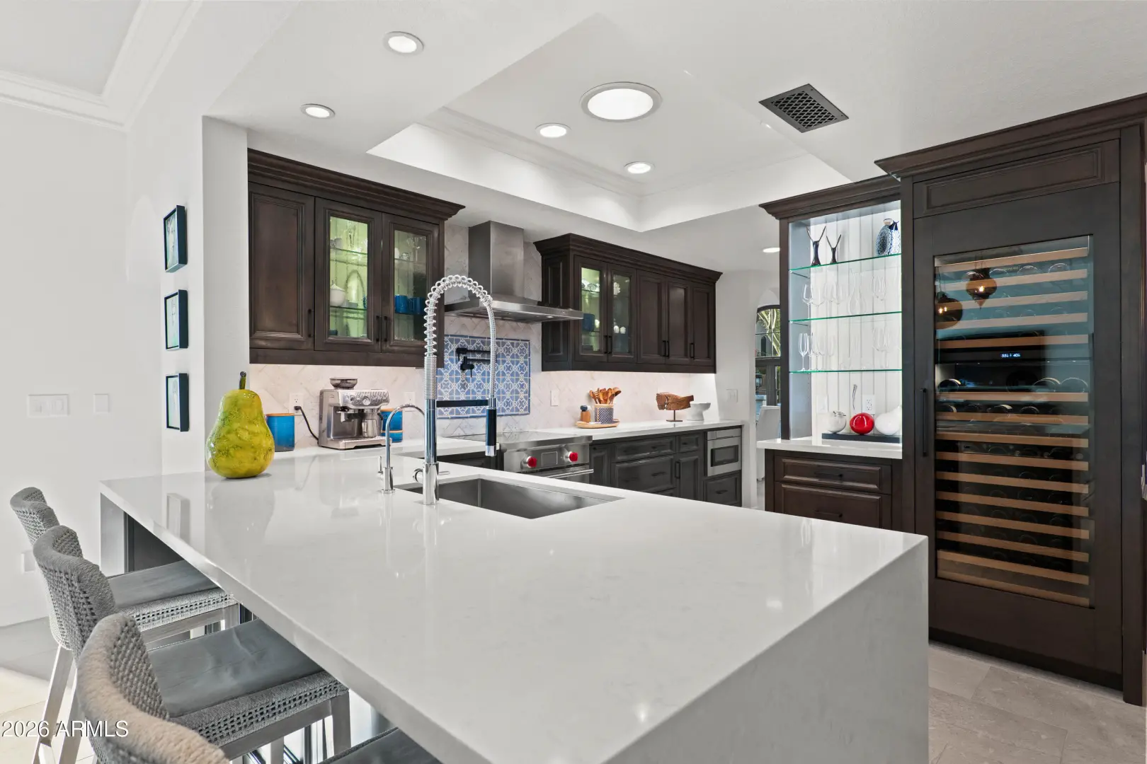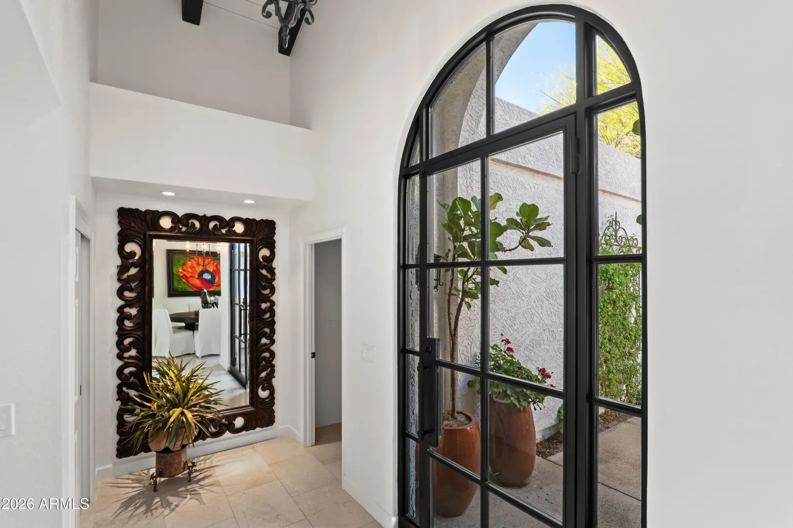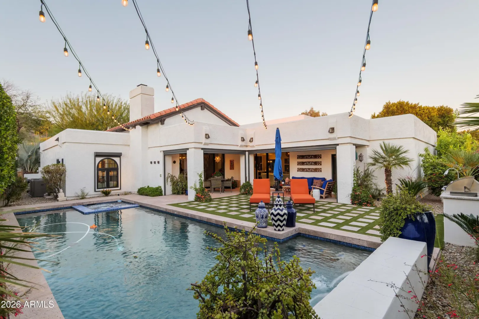 Beautiful home in the highly sought after guard-gated Biltmore Greens community within the coveted Arizona Biltmore. This luxurious Santa Barbara Spanish style home has been tastefully remodeled throughout, including natural limestone flooring, custom kitchen cabinetry with Wolf and Sub-Zero appliances, including a brand new 144 bottle Sub-Zero wine tower, all new energy efficient windows and doors, and a stunning primary suite including a designer bathroom and custom California Closet featuring integrated lighting and glass doors. The backyard oasis features complete privacy, custom built-in grill, pool and hot tub, and party lights. Home automation includes an EV built in charging station and technology controlled lighting.