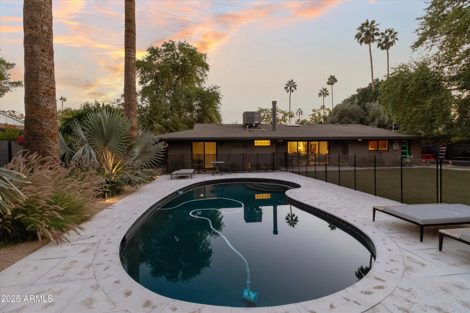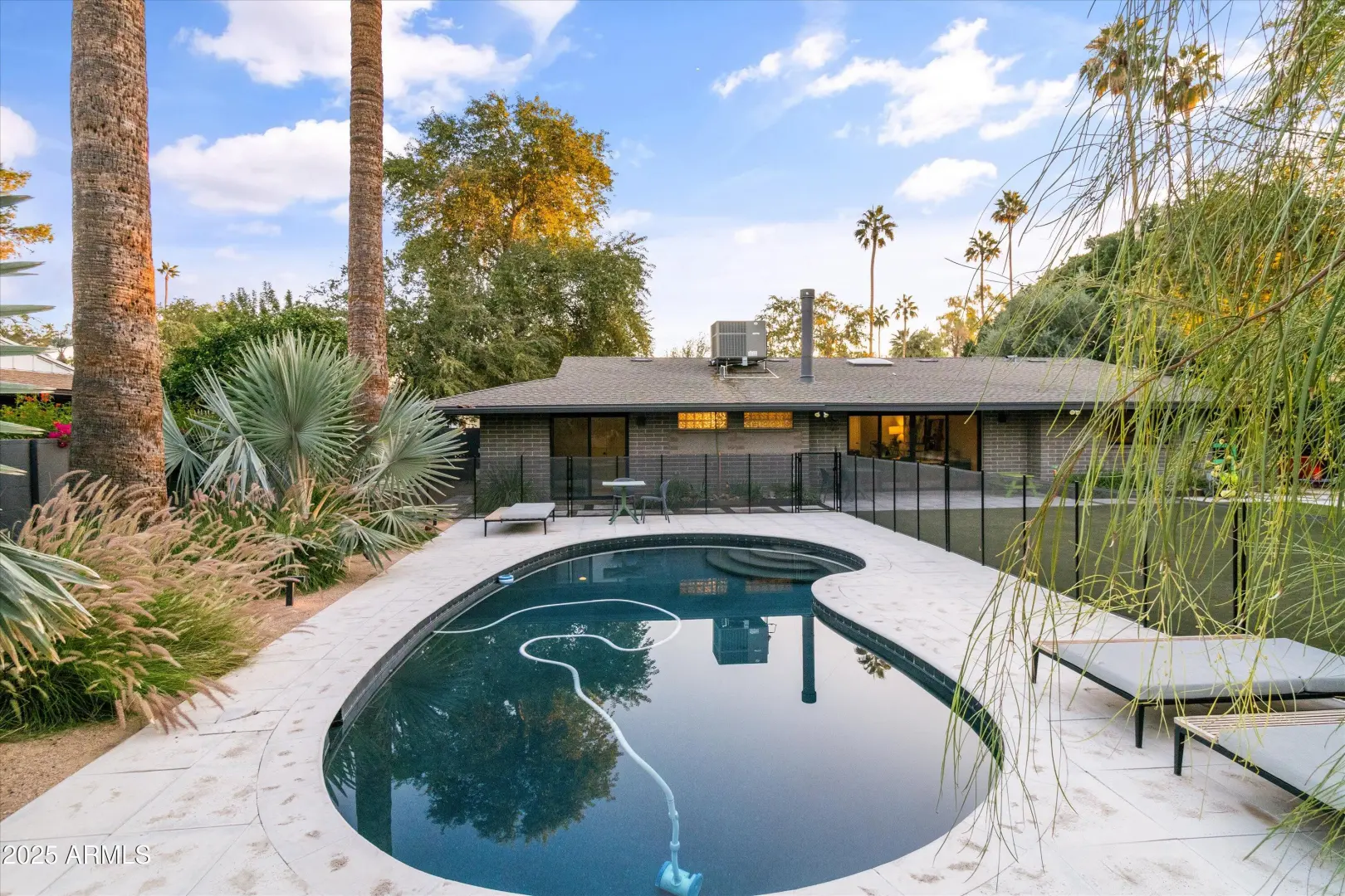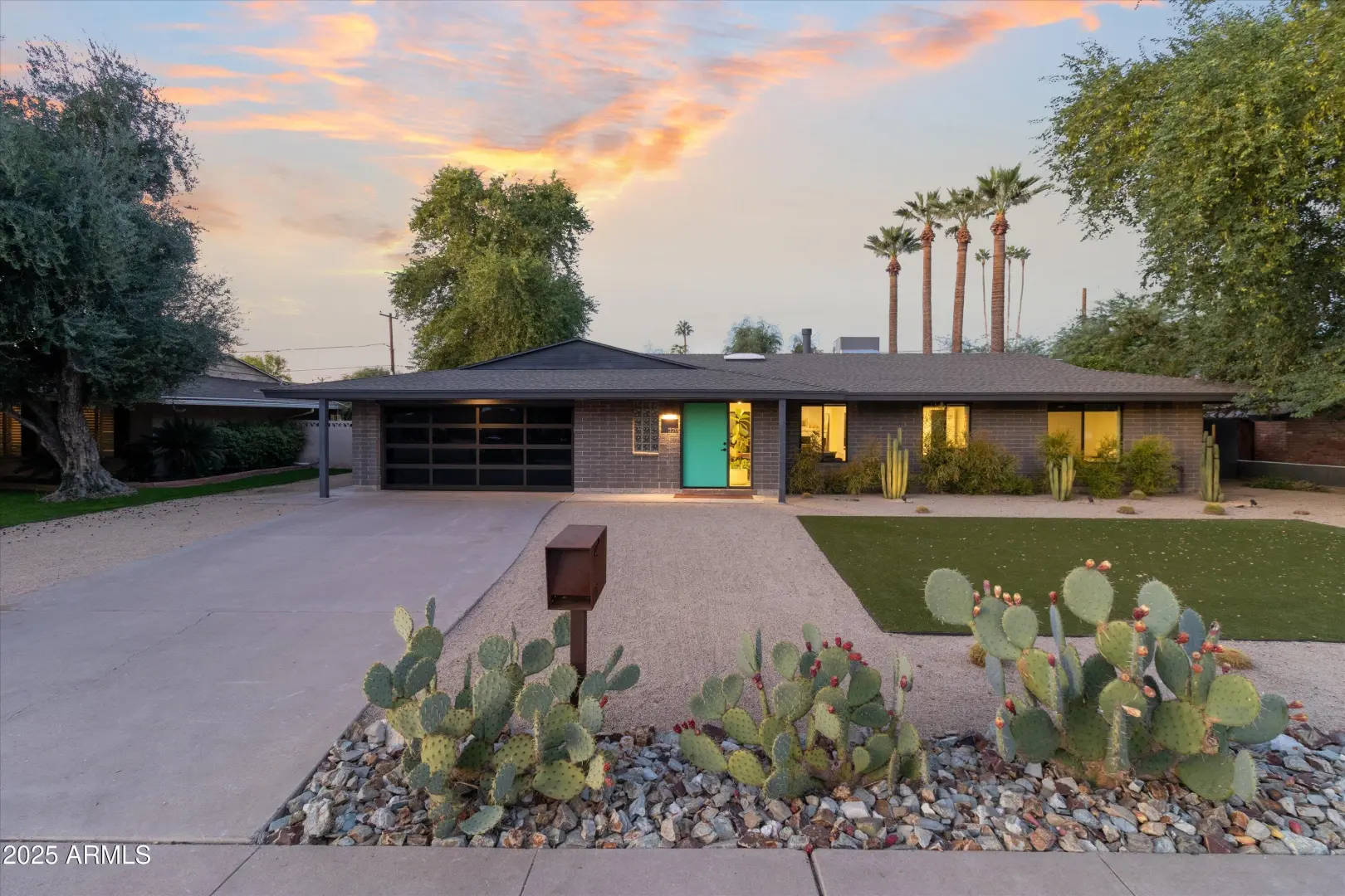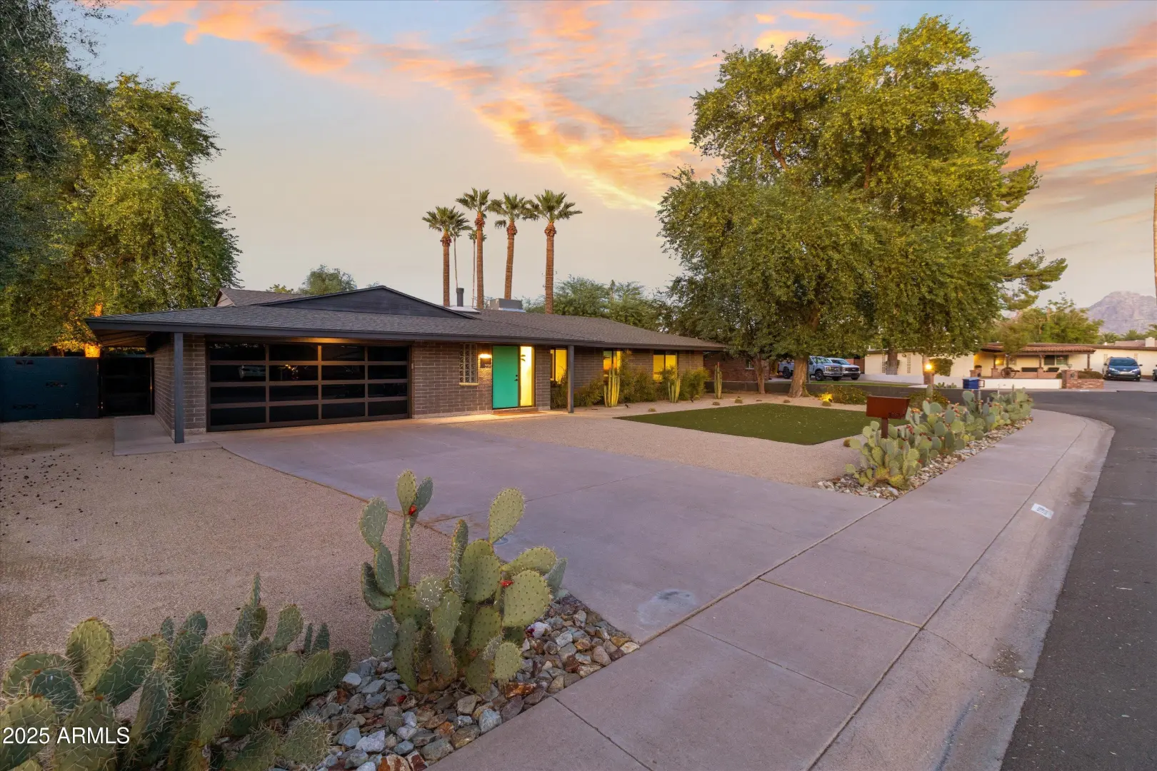 Exceptional mid-century residence between the 7s, set on an expansive 12,000 sq ft lot with timeless curb appeal. The exterior showcases fresh sandblasted brick, clean modern lines, and an oversized slider that opens the home to its stunning outdoor spaces. The recently reimagined backyard centers around a 4-year-old designer pool, curated desert landscaping, and multiple areas for elevated entertaining. Natural light fills the interiors, drawing the eye to serene views of the grounds. All of this in a truly walkable North Central location—steps from the bridle path, Uptown Farmers Market, and the neighborhood's favorite restaurants.