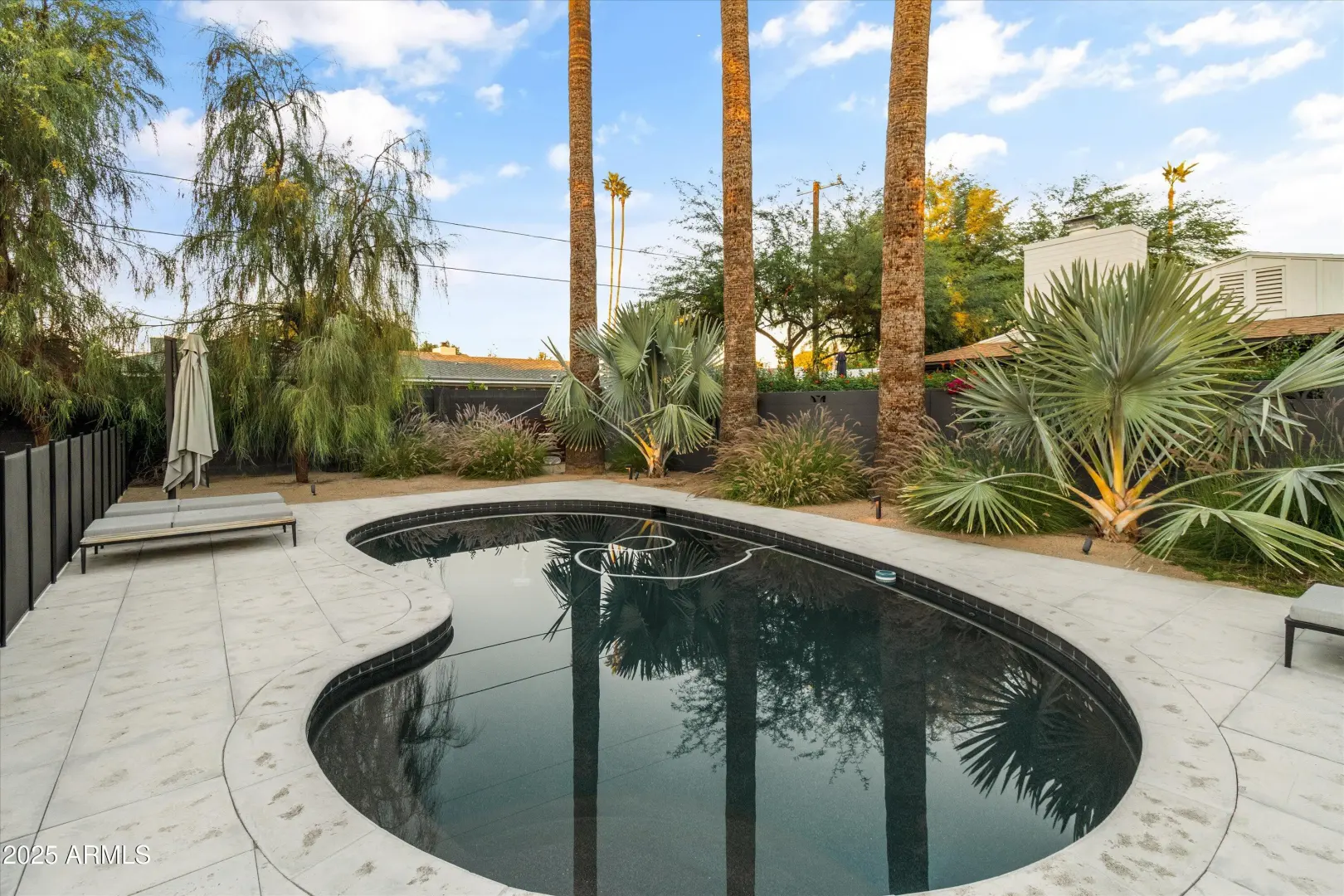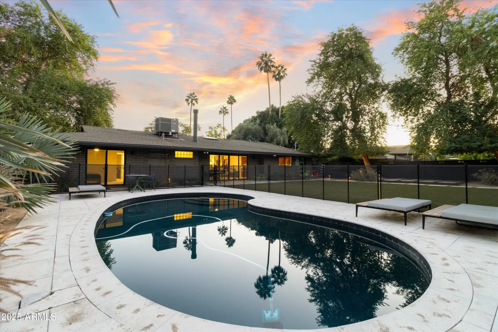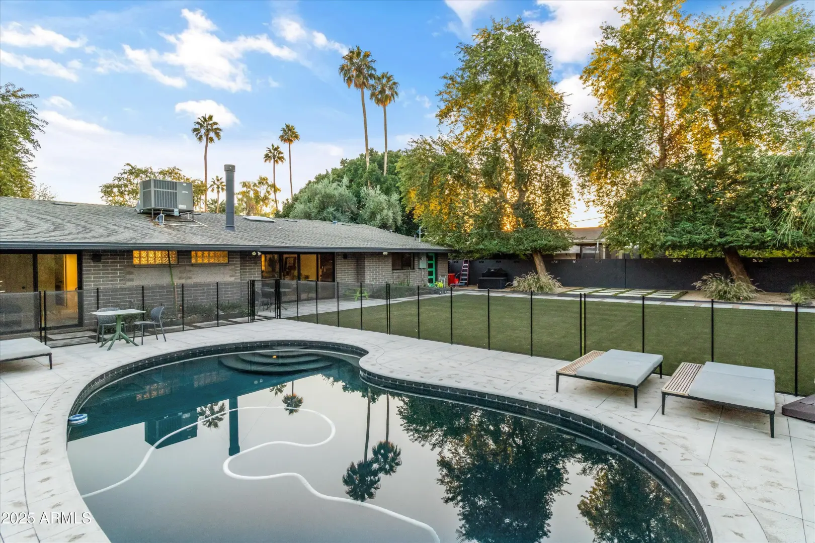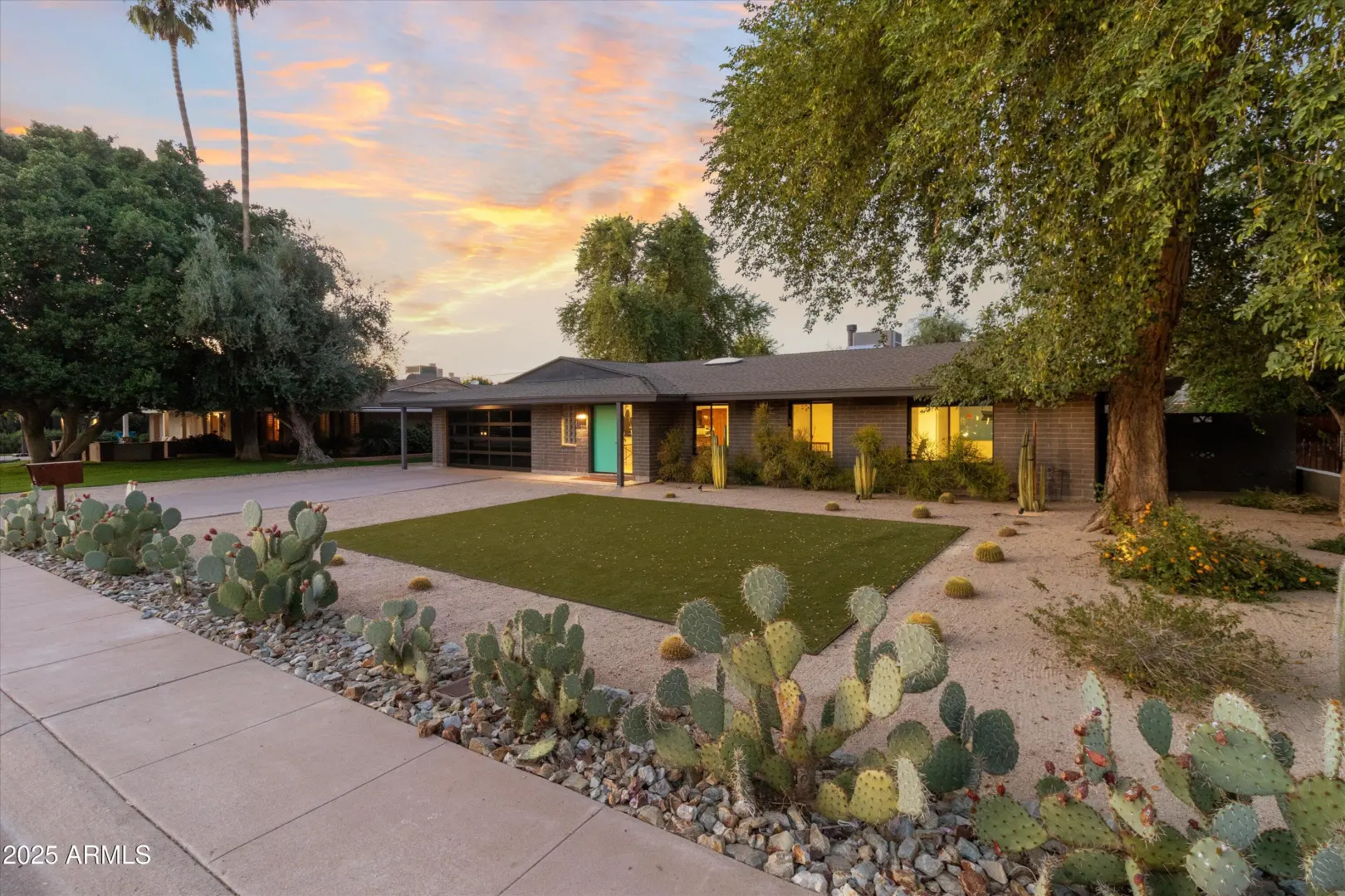 Exceptional mid-century residence between the 7s, set on an expansive 12,000 sq ft lot with timeless curb appeal. The exterior showcases fresh sandblasted brick, clean modern lines, and an oversized slider that opens the home to its stunning outdoor spaces. The recently reimagined backyard centers around a 4-year-old designer pool, curated desert landscaping, and multiple areas for elevated entertaining. Natural light fills the interiors, drawing the eye to serene views of the grounds. All of this in a truly walkable North Central location—steps from the bridle path, Uptown Farmers Market, and the neighborhood's favorite restaurants.