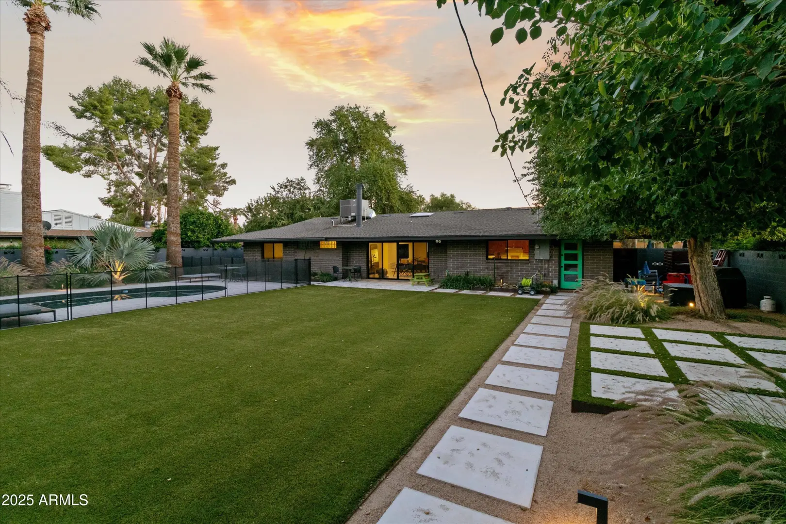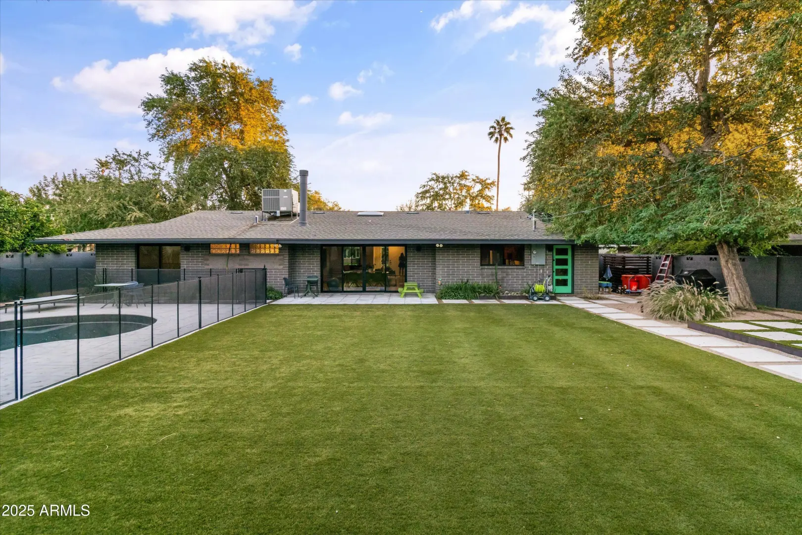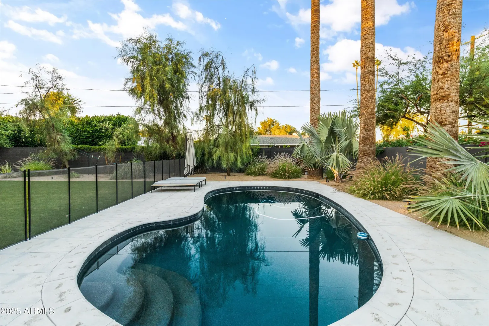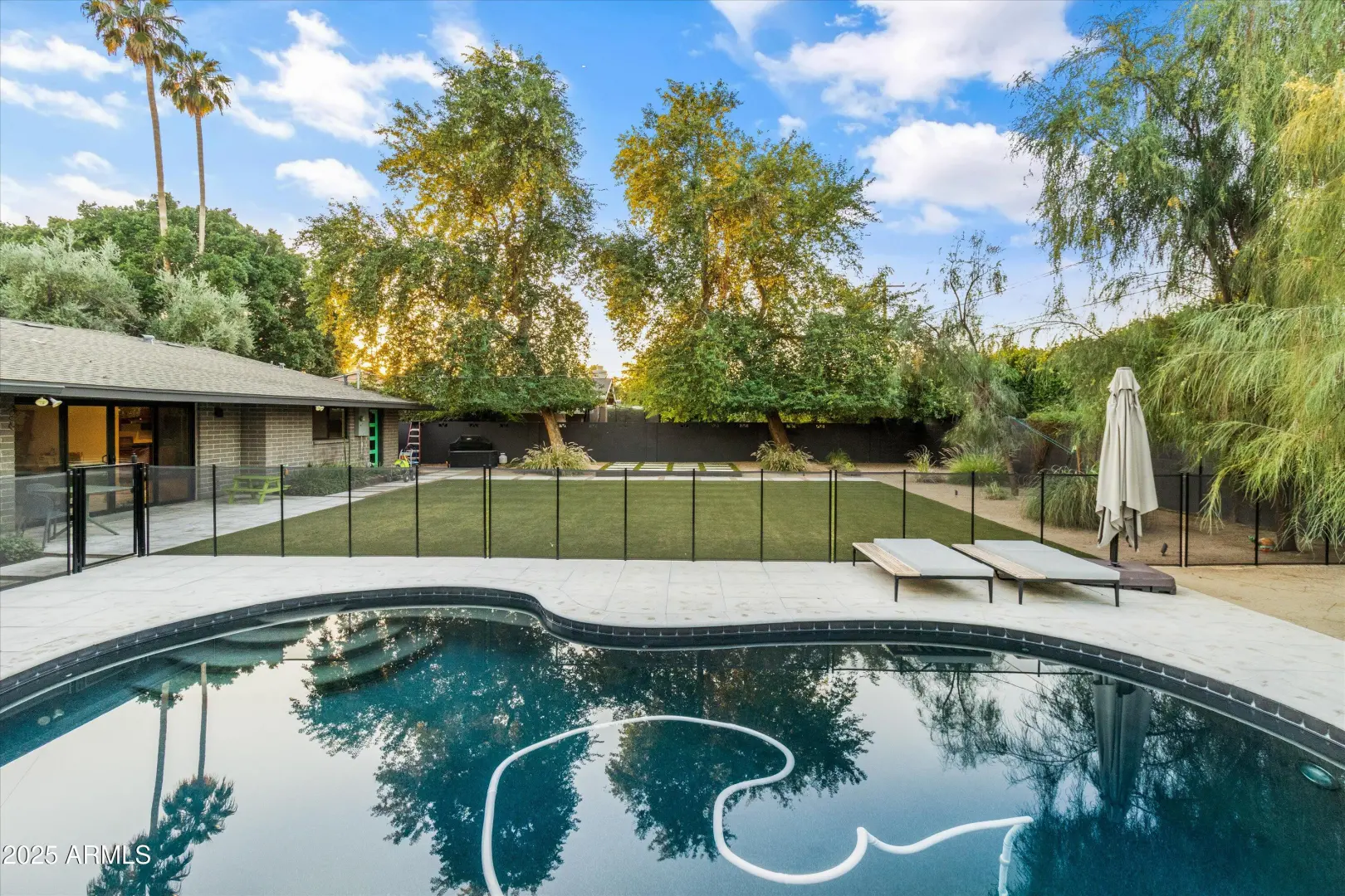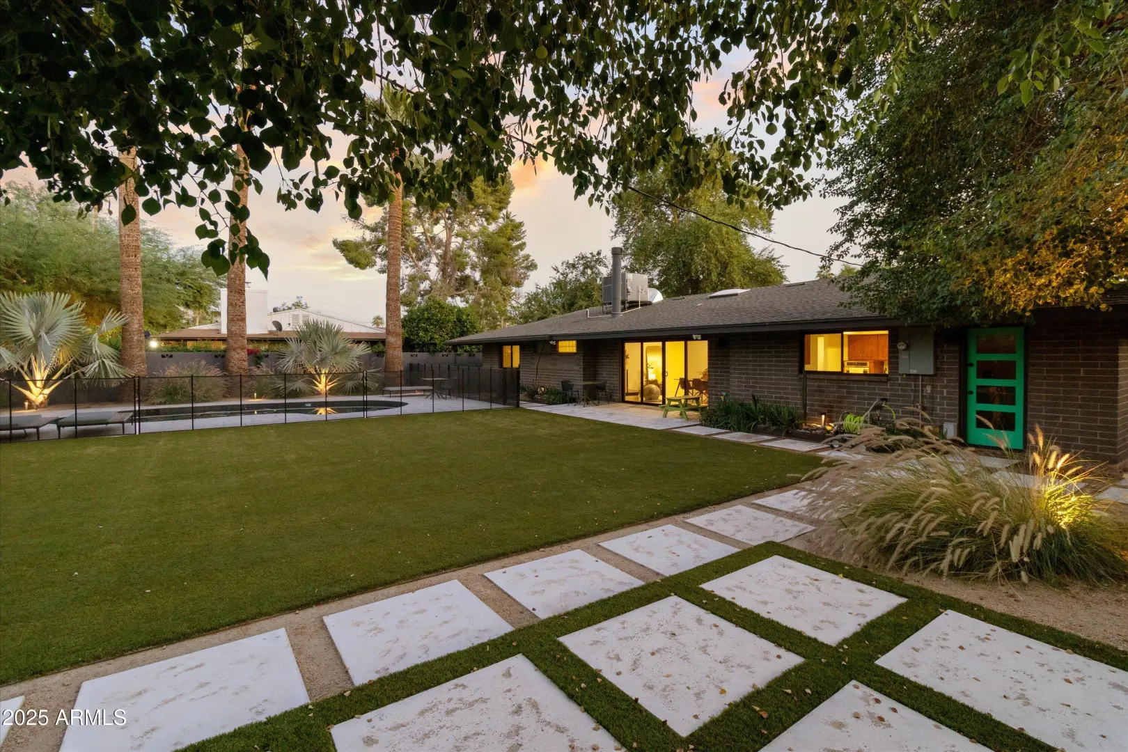 Exceptional mid-century residence between the 7s, set on an expansive 12,000 sq ft lot with timeless curb appeal. The exterior showcases fresh sandblasted brick, clean modern lines, and an oversized slider that opens the home to its stunning outdoor spaces. The recently reimagined backyard centers around a 4-year-old designer pool, curated desert landscaping, and multiple areas for elevated entertaining. Natural light fills the interiors, drawing the eye to serene views of the grounds. All of this in a truly walkable North Central location—steps from the bridle path, Uptown Farmers Market, and the neighborhood's favorite restaurants.