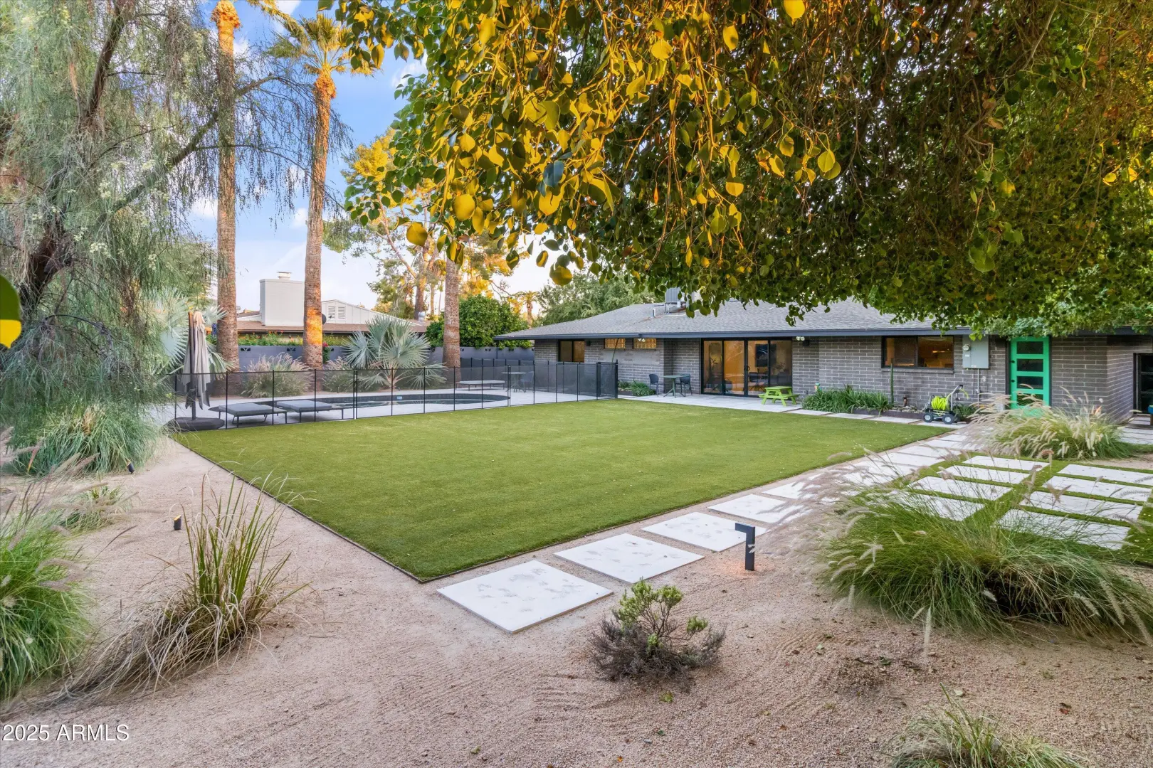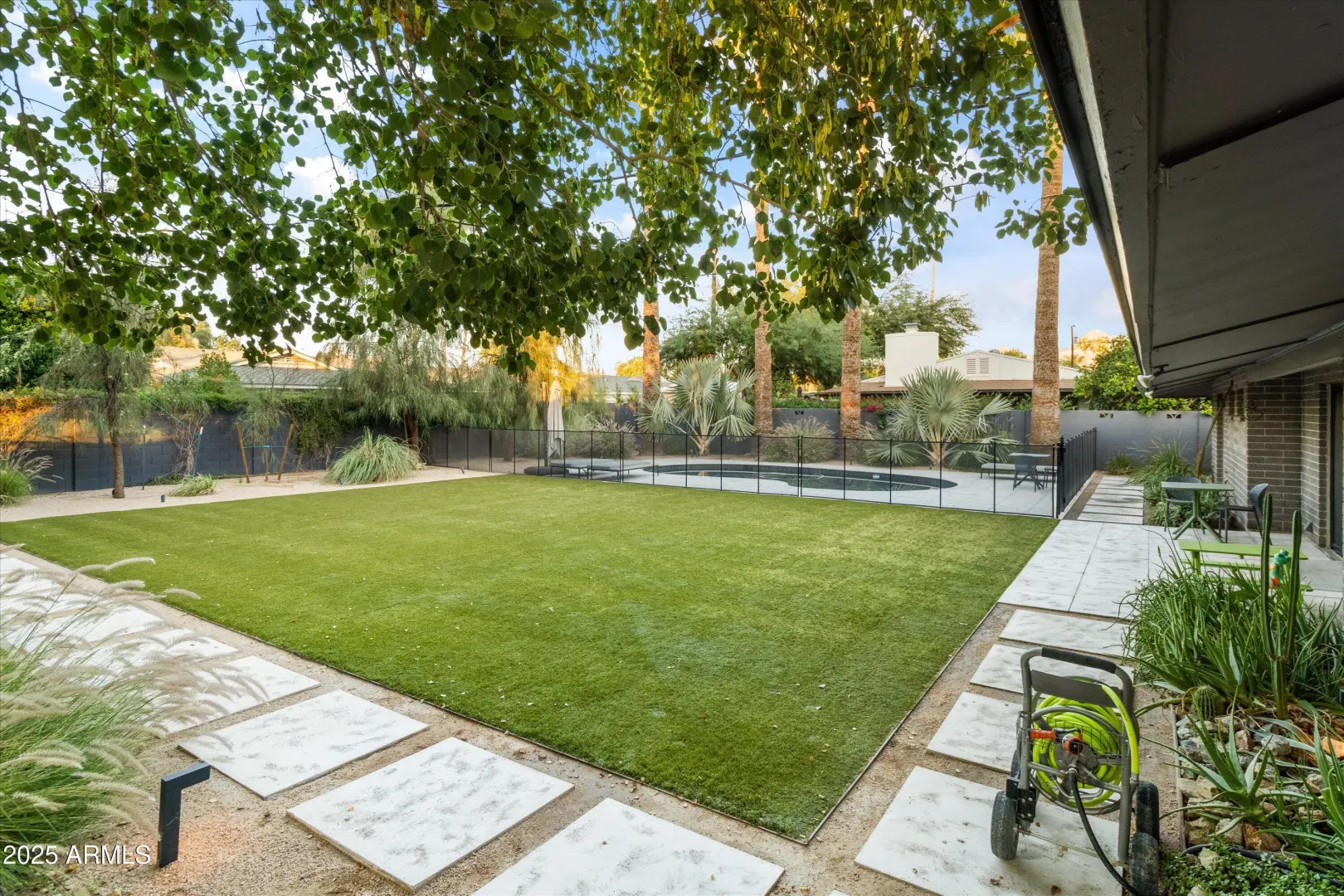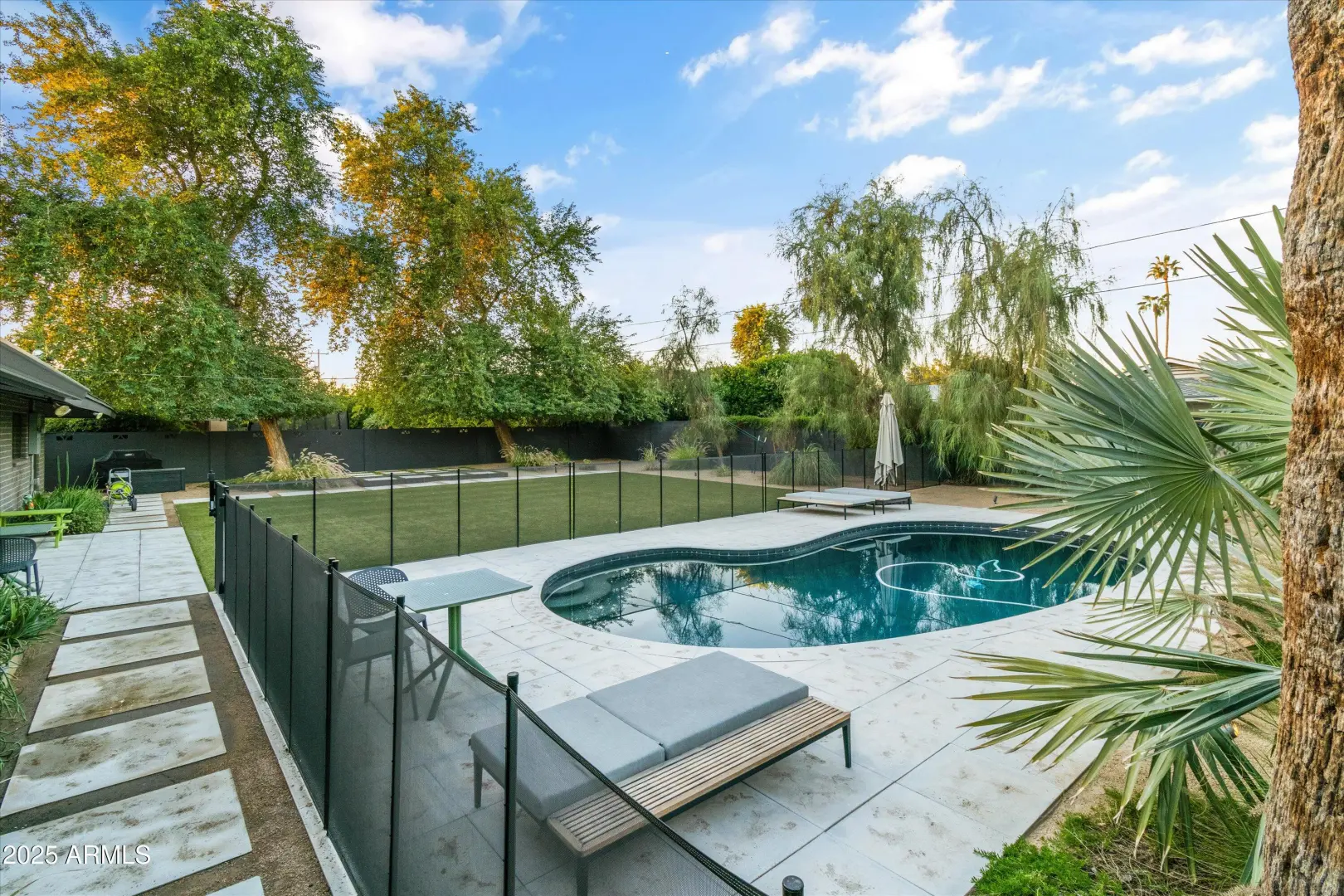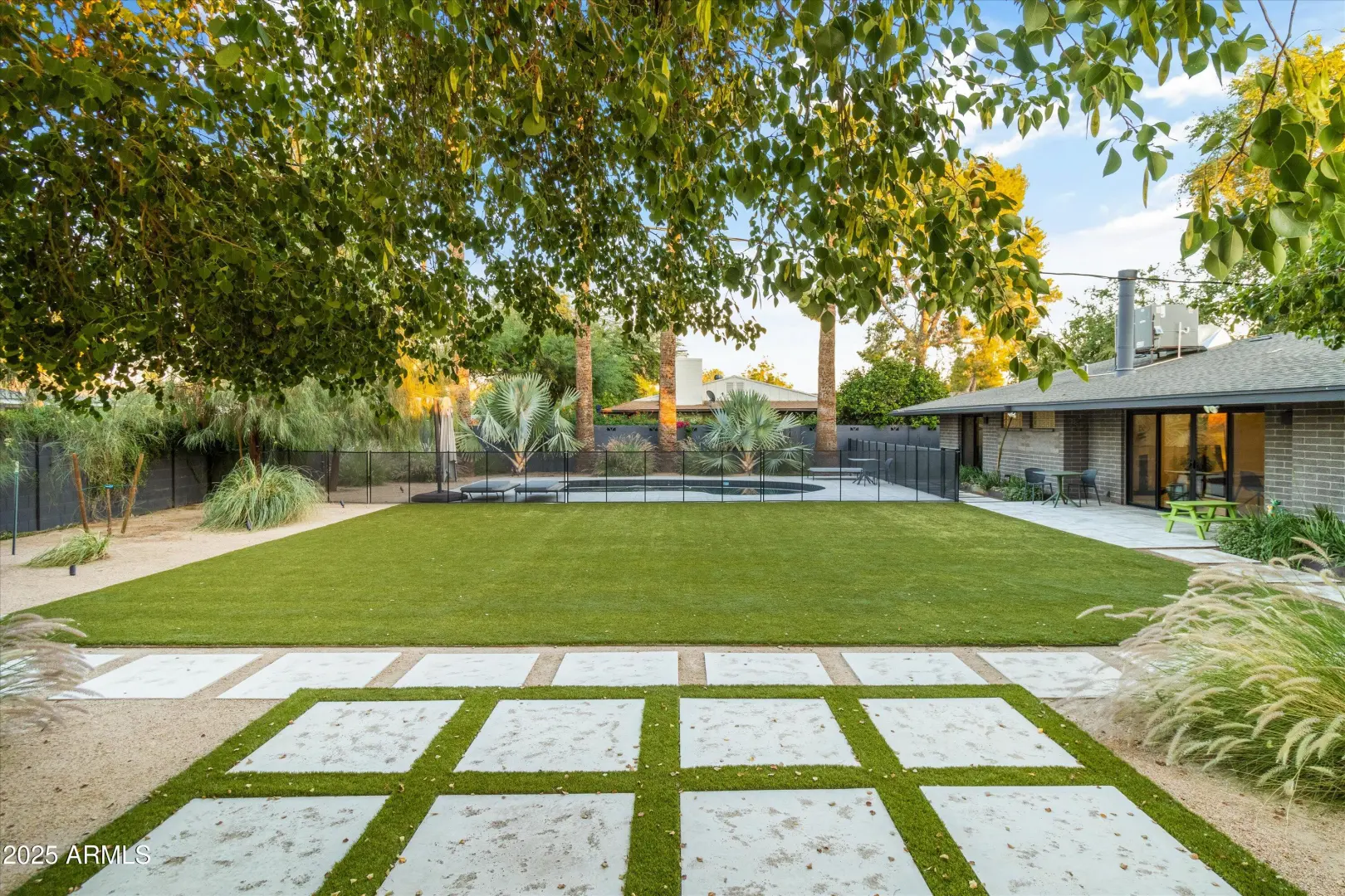Exceptional mid-century residence between the 7s, set on an expansive 12,000 sq ft lot with timeless curb appeal. The exterior showcases fresh sandblasted brick, clean modern lines, and an oversized slider that opens the home to its stunning outdoor spaces. The recently reimagined backyard centers around a 4-year-old designer pool, curated desert landscaping, and multiple areas for elevated entertaining. Natural light fills the interiors, drawing the eye to serene views of the grounds. All of this in a truly walkable North Central location—steps from the bridle path, Uptown Farmers Market, and the neighborhood's favorite restaurants.