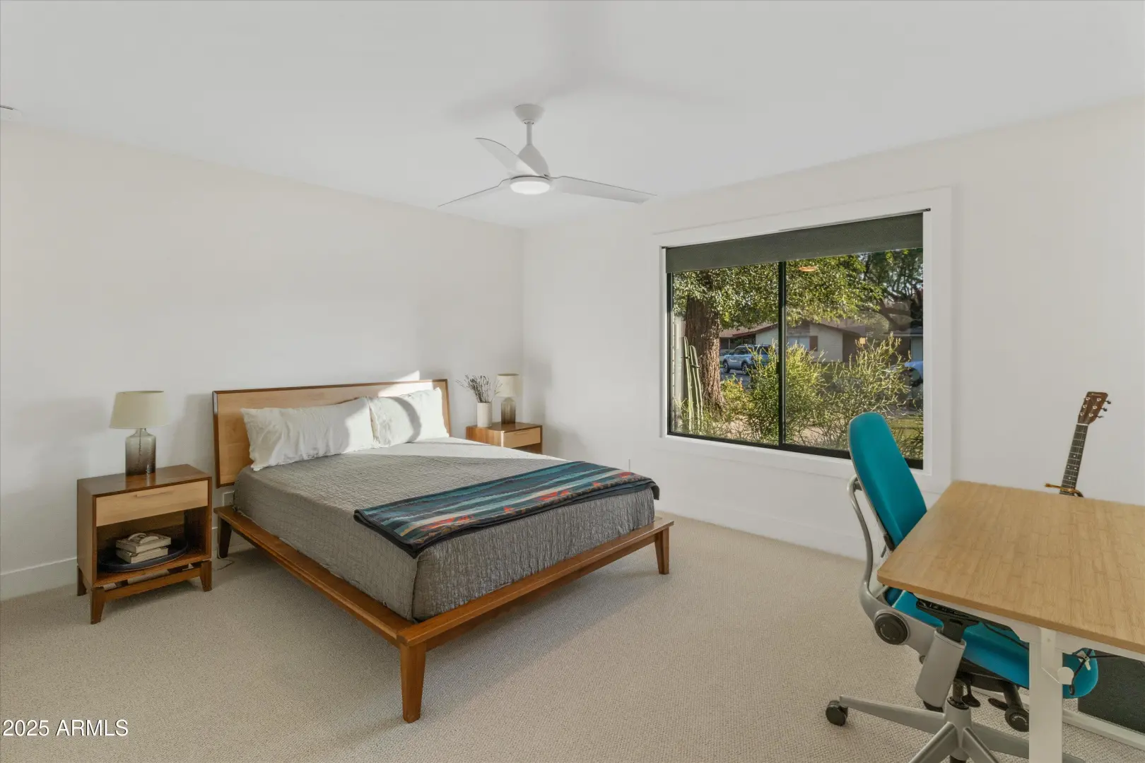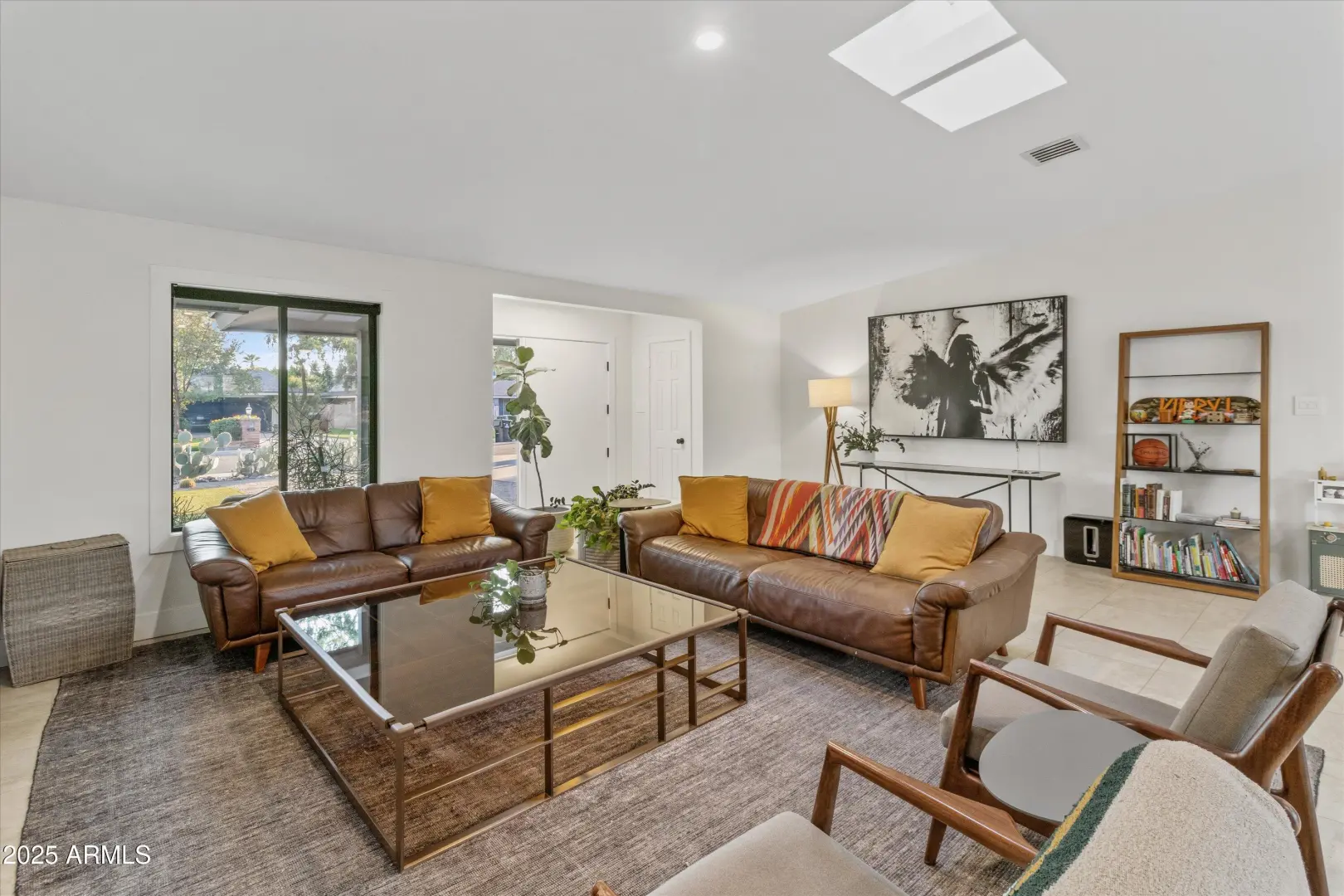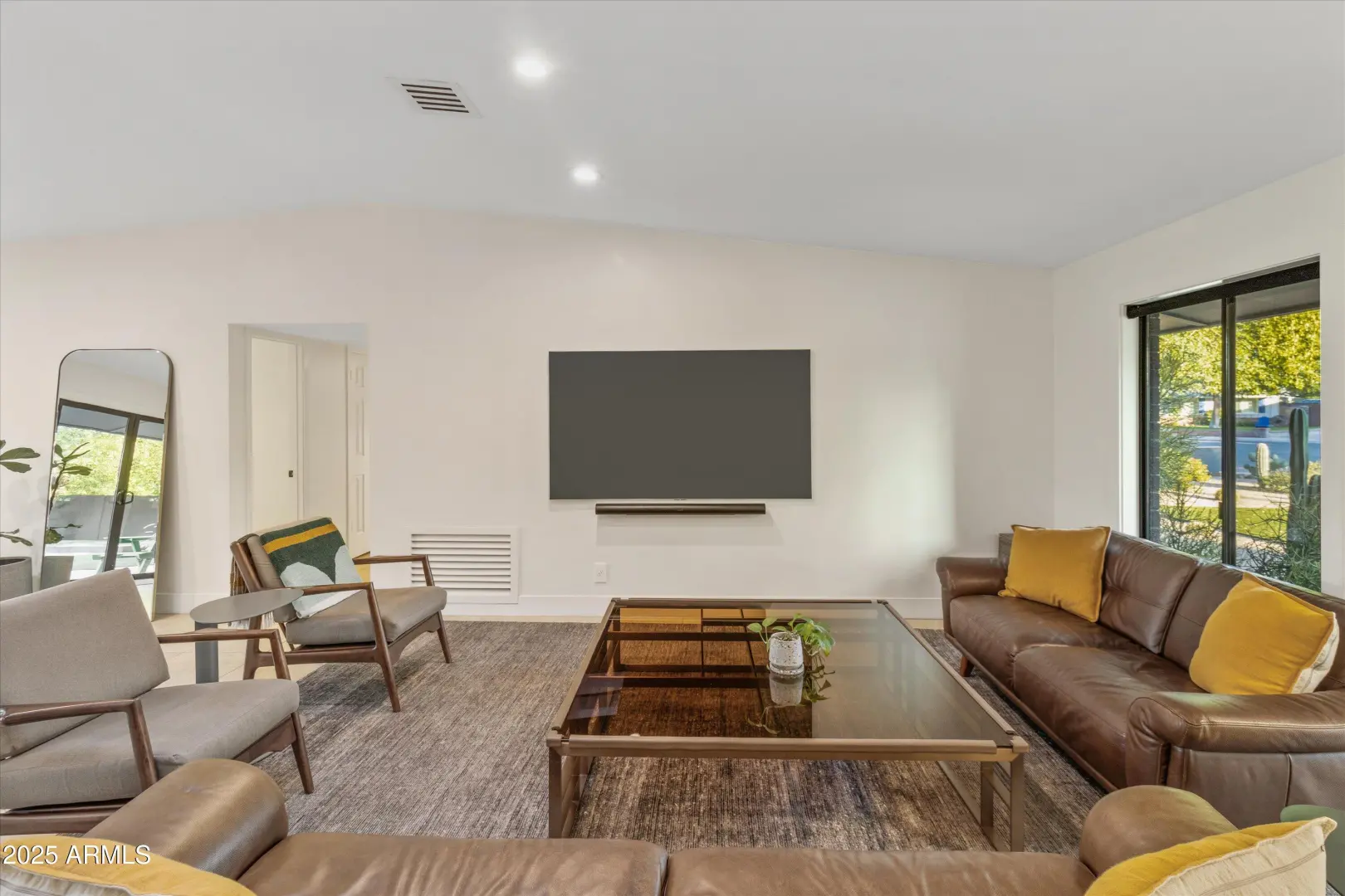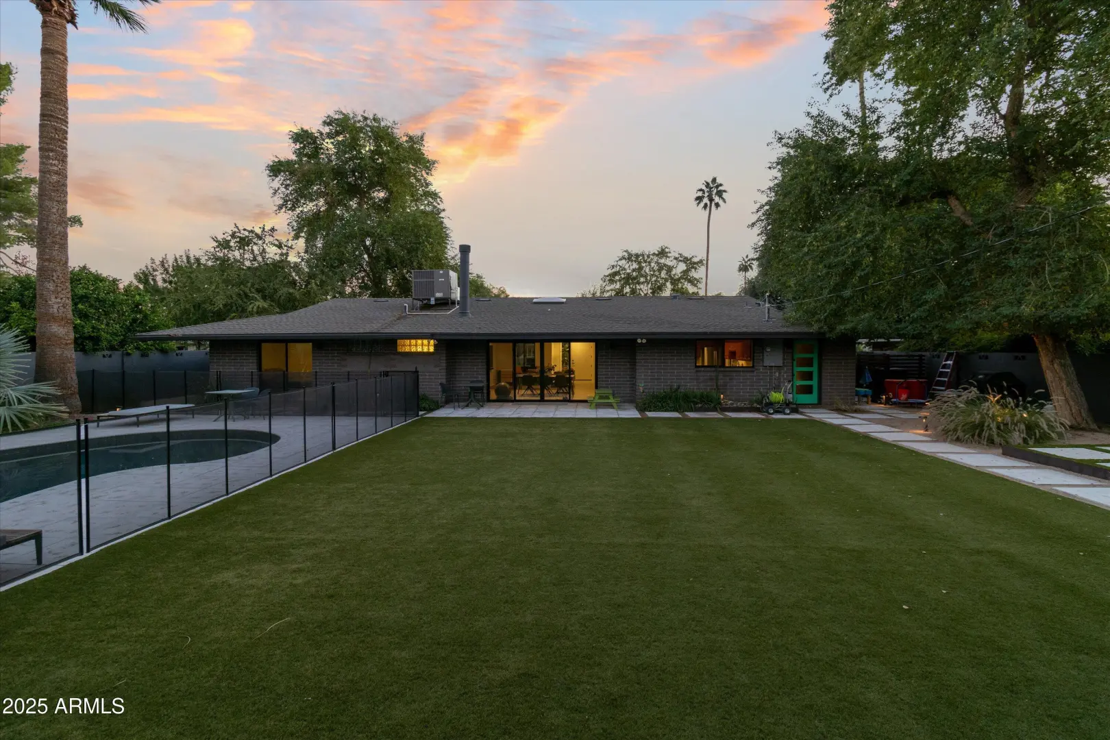 Exceptional mid-century residence between the 7s, set on an expansive 12,000 sq ft lot with timeless curb appeal. The exterior showcases fresh sandblasted brick, clean modern lines, and an oversized slider that opens the home to its stunning outdoor spaces. The recently reimagined backyard centers around a 4-year-old designer pool, curated desert landscaping, and multiple areas for elevated entertaining. Natural light fills the interiors, drawing the eye to serene views of the grounds. All of this in a truly walkable North Central location—steps from the bridle path, Uptown Farmers Market, and the neighborhood's favorite restaurants.