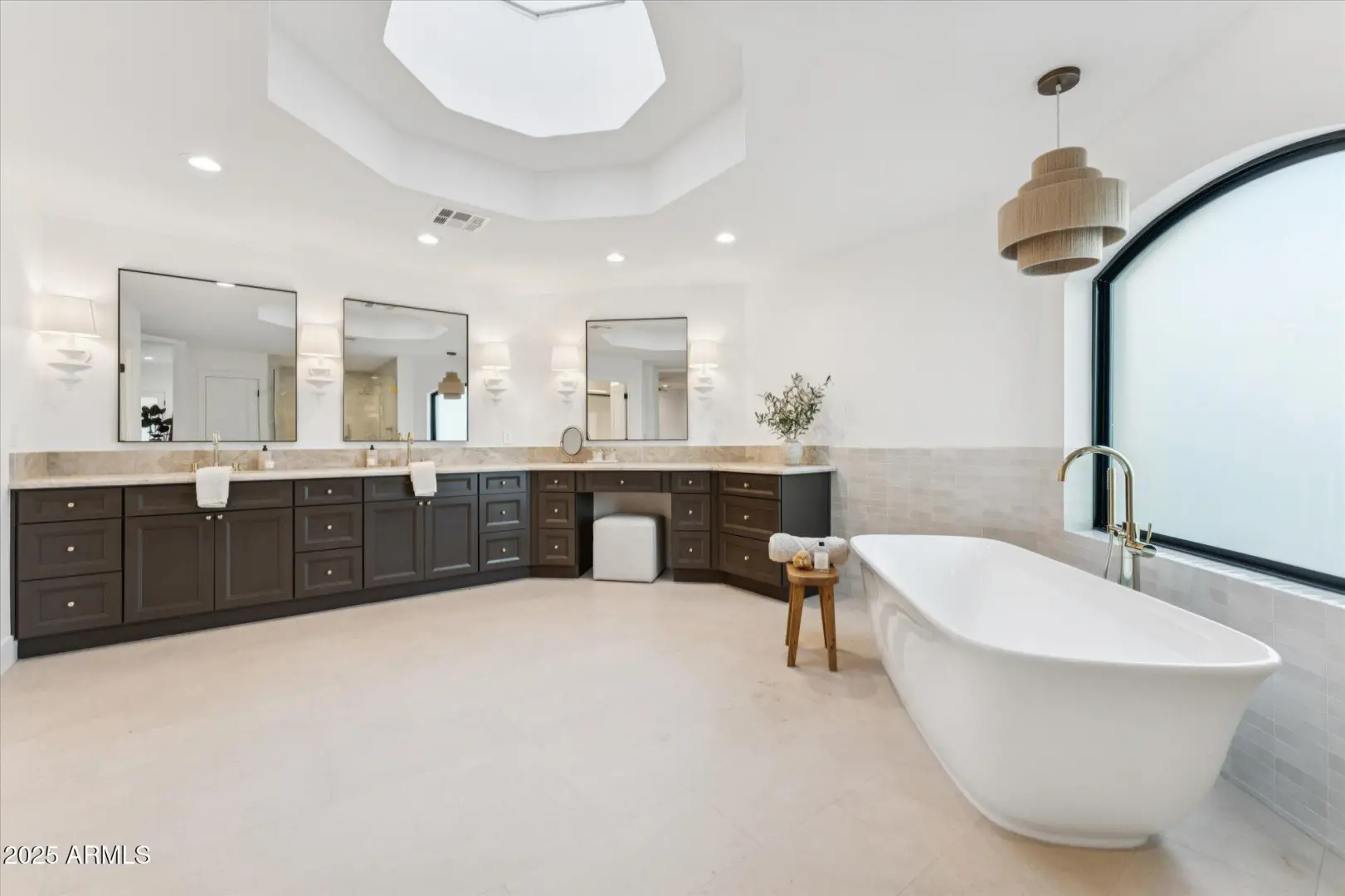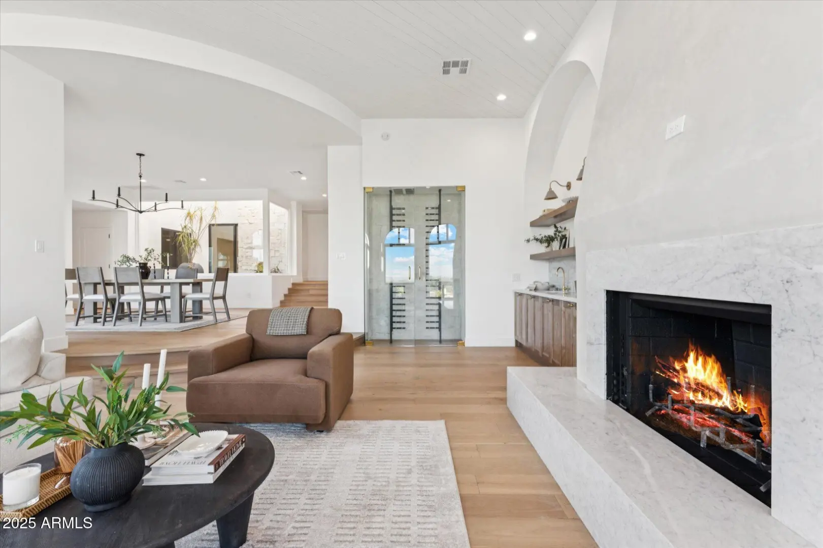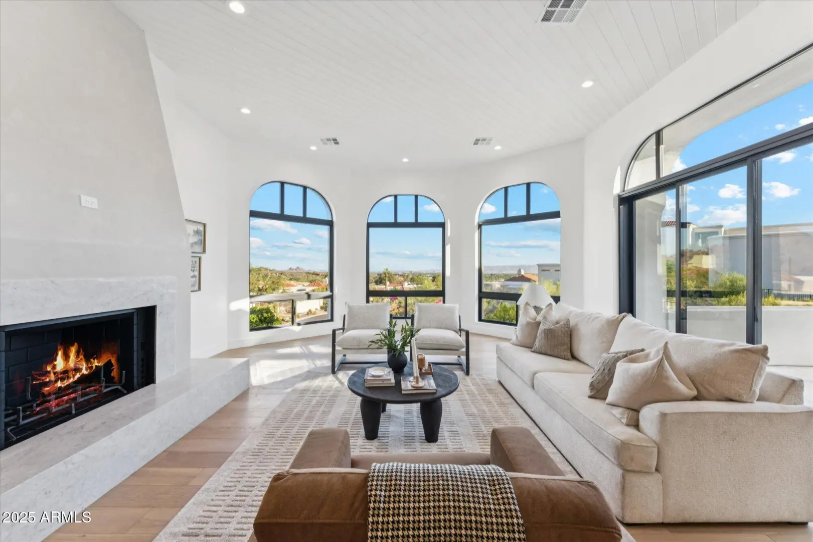 WINNER OF BEST HOME ON BILTMORE TOUR! Mountain-Top Masterpiece in an Exclusive 24-Hour Guard-Gated Community. Perched atop one of the most breathtaking locations, 3800 E Lincoln Dr #54 is a newly remodeled masterpiece that redefines luxury living. Nestled within an extremely exclusive 24-hour guard-gated community, this expansive three-bedroom, three-bathroom estate offers both privacy and sophistication. Thoughtfully designed with hand-picked natural stone finishes, the home seamlessly blends elegance and comfort, while floor-to-ceiling windows showcase some of the most spectacular views in the state. The massive primary suite is a true sanctuary, featuring its own wet bar and coffee station for ultimate convenience