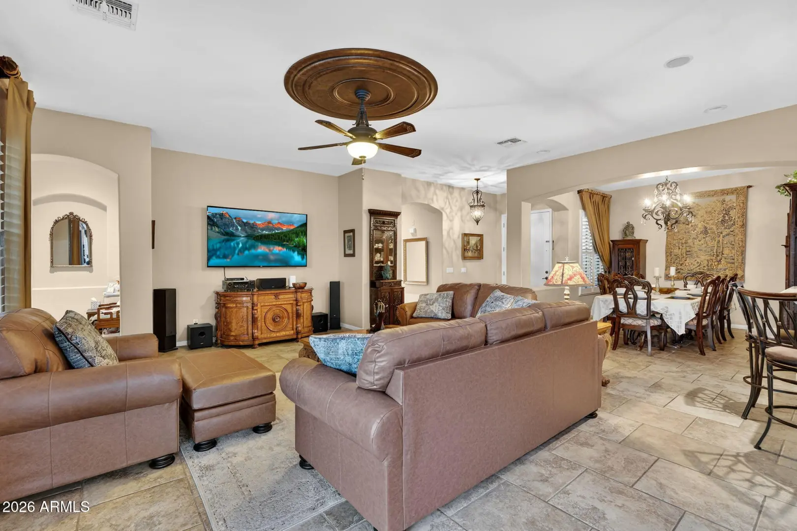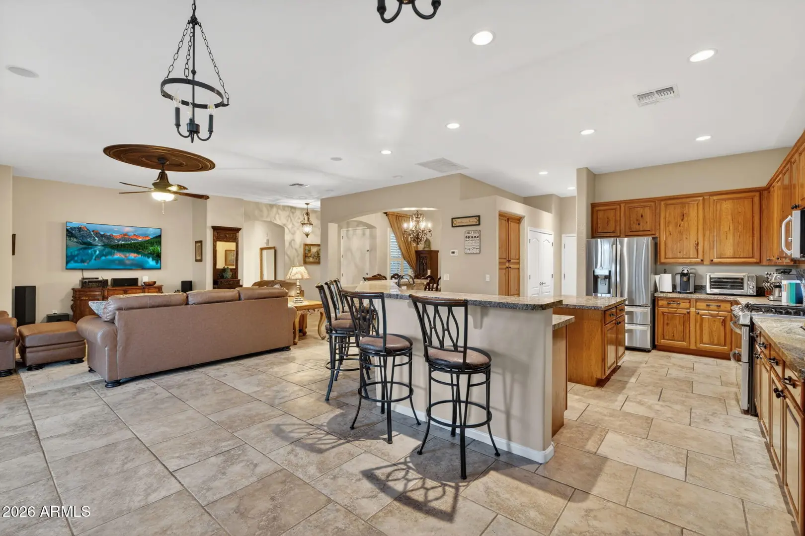 Rare opportunity in Seville Golf & Country Club featuring the highly sought-after Pabello floorplan on an oversized north/south-facing lot just steps from the clubhouse, golf course, and community park.This 4-bedroom, 3-bath home offers a flexible split layout with two suites, ideal for multigenerational living or extended guests. The primary suite includes direct access to the backyard and a spacious bath with built-in closet organization. A versatile bonus room adds additional living or office space. The kitchen is well-appointed with 42' hickory cabinetry, granite countertops, stainless LG appliances including a double oven with gas cooktop, center island, and breakfast bar. It opens to the great room and formal dining area, creating an easy flow for everyday living and entertaining.
