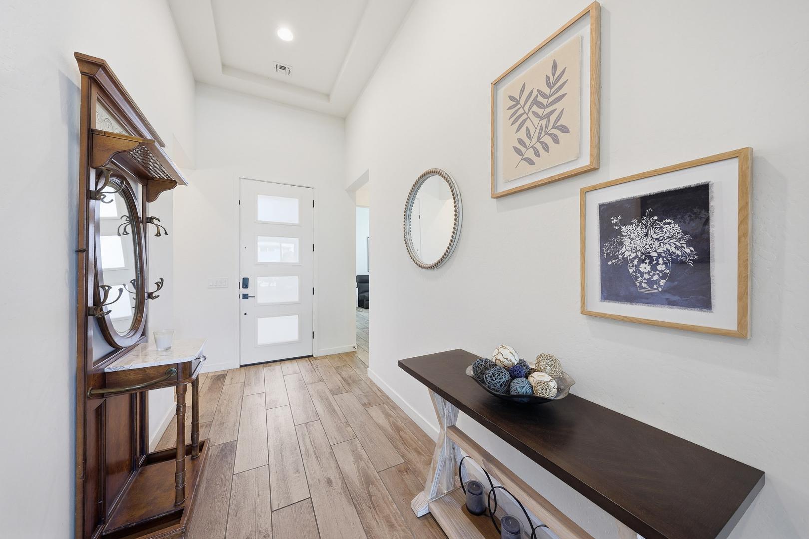 Now available as a long-term luxury furnished rental. This single-level home is ideally situated within an exclusive 19-home gated enclave. Built in 2022, the residence offers modern design, exceptional privacy, and effortless indoor-outdoor living. The thoughtfully designed floor plan includes an attached casita, perfect for guests, multigenerational living, or a private home office. The open-concept great room flows seamlessly to the backyard through expansive sliding doors, creating the ultimate Arizona lifestyle experience. The resort-style outdoor space features a heated pool and spa, a built-in grill, and a low-maintenance private backyard ideal for relaxing or entertaining year-round. The chef's kitchen is equipped with premium KitchenAid and Thermador appliances, generous