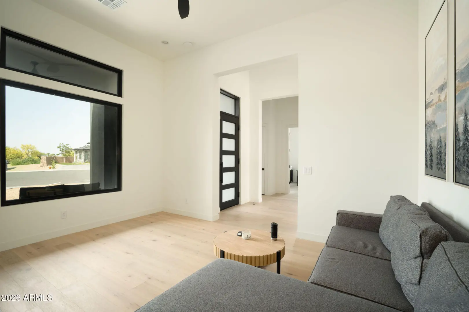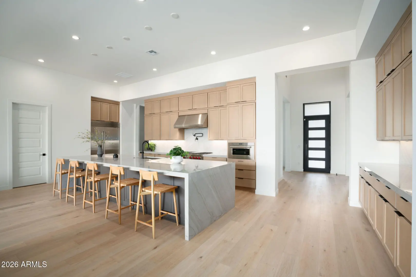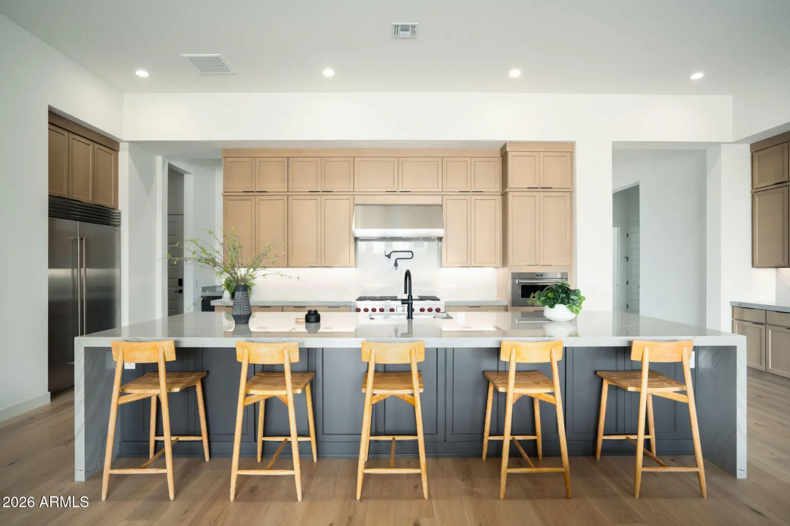 Built in Fall of 2025, this Kartchner model in Sonoran Trails offers a rare opportunity to step into a home that feels brand new--without sacrificing time, energy, or design vision. From the moment you enter, soaring ceilings, walls of glass, and wide-plank white oak floors create a sense of light, scale, and effortless sophistication. The kitchen is the centerpiece--both functional and beautiful--anchored by a statement island that naturally becomes the gathering place. Outfitted for entertaining and everyday living alike, it flows seamlessly into the great room, where oversized sliding glass doors open to a true indoor-outdoor lifestyle that defines Arizona living. The primary suite is a private escape--designed for quiet mornings and relaxed evenings--with a spa-inspired bath, soaking
