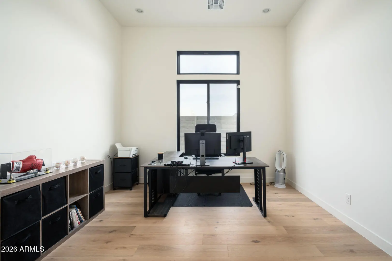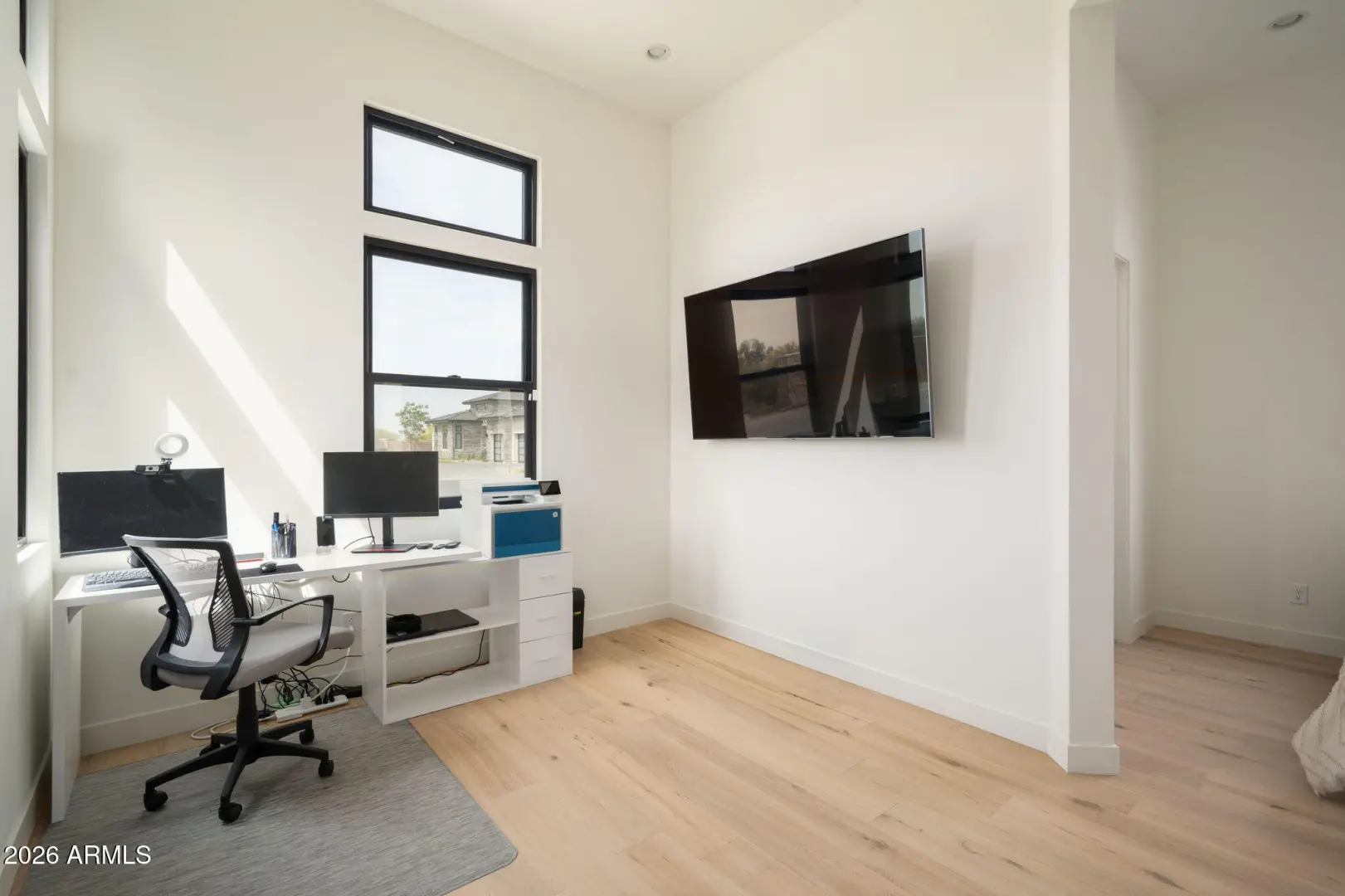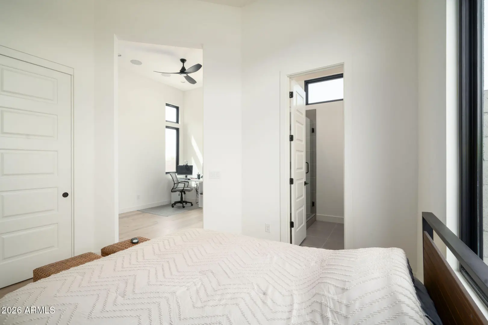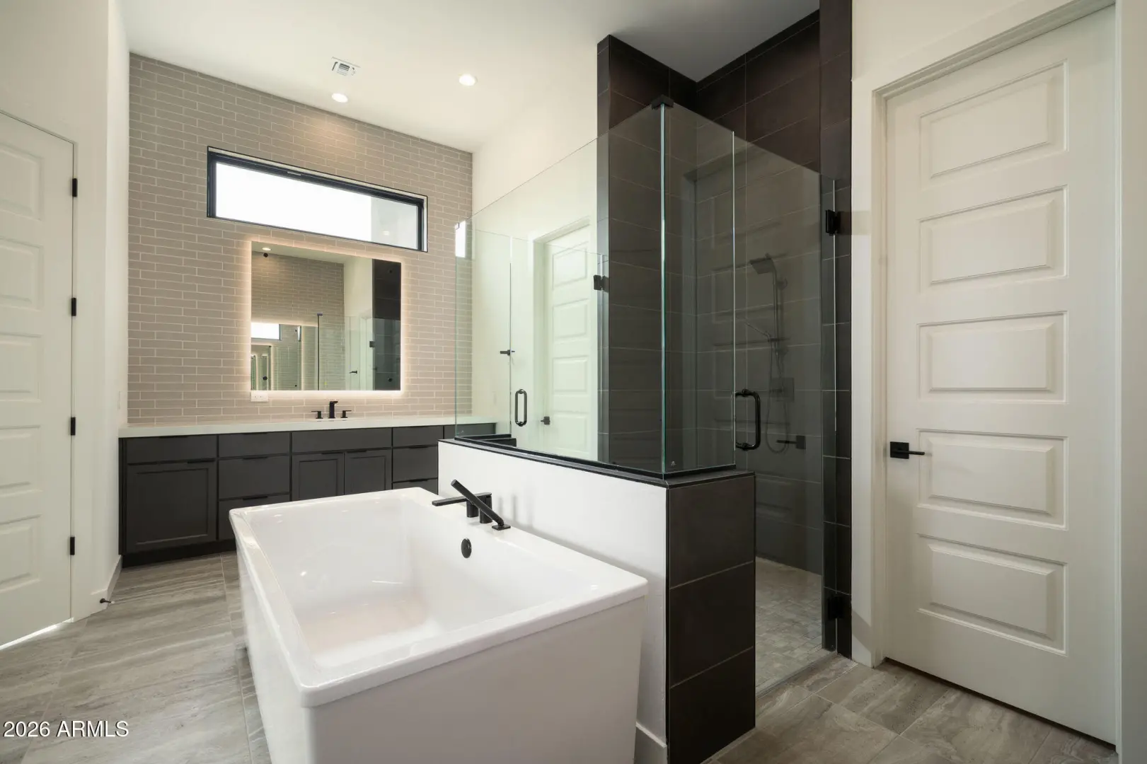 Built in Fall of 2025, this Kartchner model in Sonoran Trails offers a rare opportunity to step into a home that feels brand new--without sacrificing time, energy, or design vision. From the moment you enter, soaring ceilings, walls of glass, and wide-plank white oak floors create a sense of light, scale, and effortless sophistication. The kitchen is the centerpiece--both functional and beautiful--anchored by a statement island that naturally becomes the gathering place. Outfitted for entertaining and everyday living alike, it flows seamlessly into the great room, where oversized sliding glass doors open to a true indoor-outdoor lifestyle that defines Arizona living. The primary suite is a private escape--designed for quiet mornings and relaxed evenings--with a spa-inspired bath, soaking