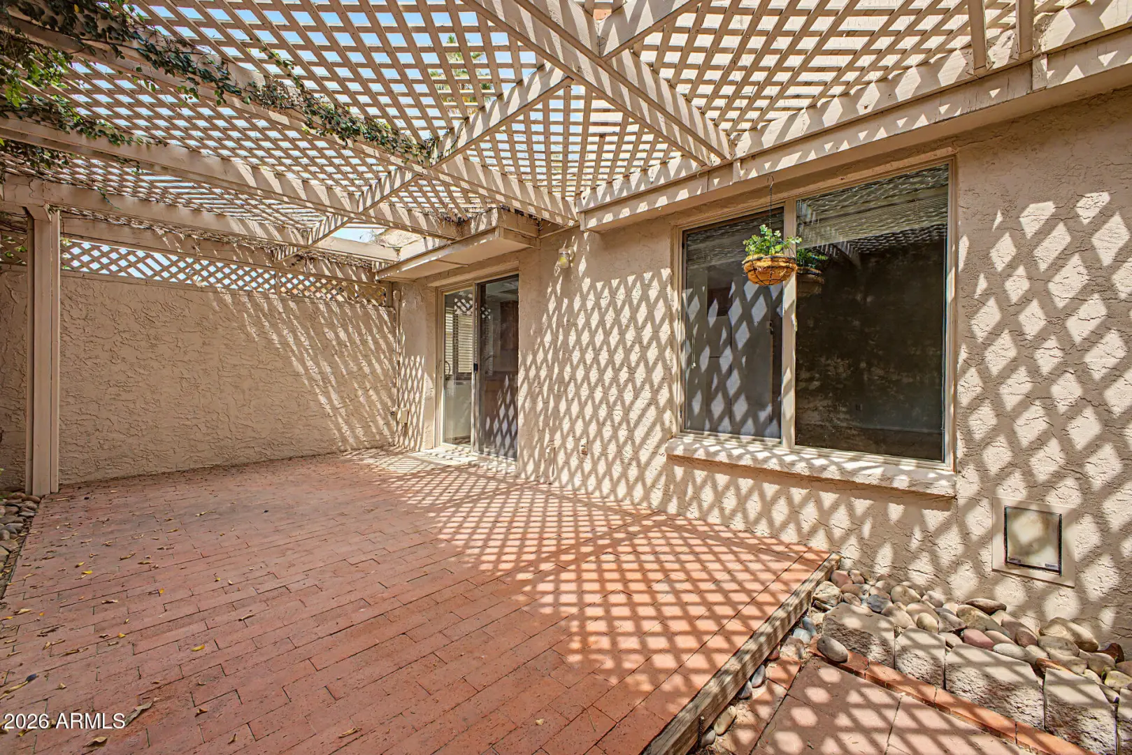 Amazing central location--just minutes from Old Town Scottsdale and the Kierland area! Discover a quiet, park-like oasis in the highly sought-after Colony at Scottsdale. This single-story, 3 bed, 2 bath patio home offers no interior steps and is a rare stand-alone unit with no neighbors above or next to it--one of the best locations in the community. A new roof is being installed for added peace of mind, and the home features dual-pane windows and a 2019 AC. The spacious great room with a charming brick fireplace opens to lush green space, offering privacy and serenity. Enjoy three private patios plus an exterior storage area. Just steps from the Scottsdale greenbelt's 11 miles of trails and canal access. Community amenities include a pool, spa, and tennis courts!