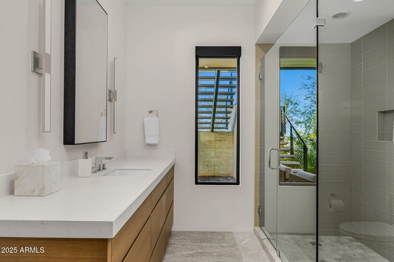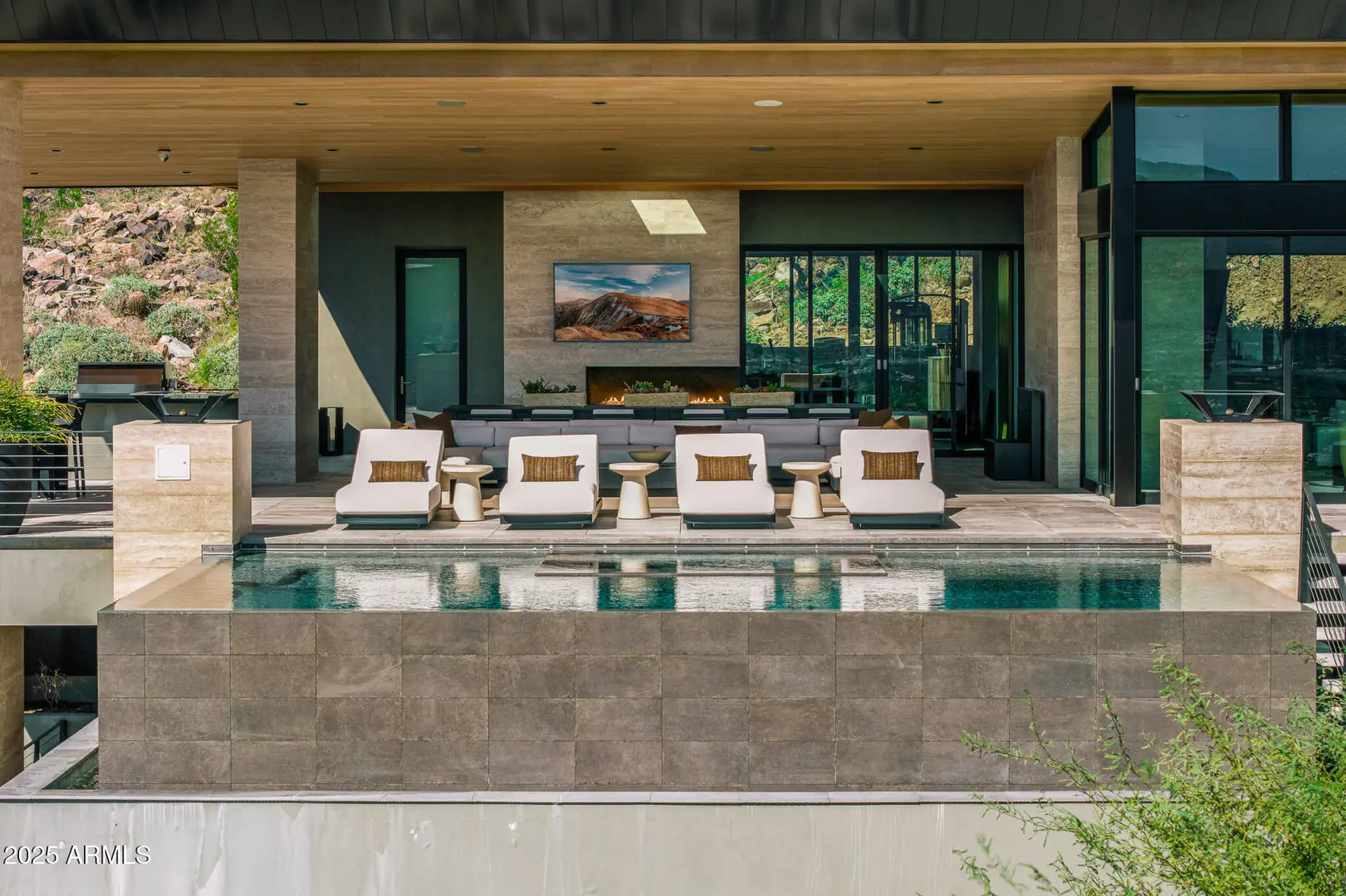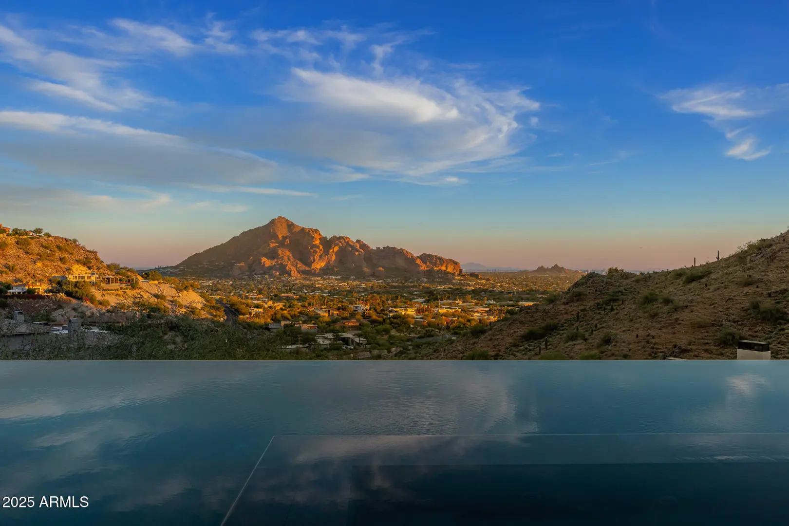 Positioned on a serene hillside Paradise Reserve, this modern masterpiece showcases sleek architecture and sweeping Paradise Valley views that define luxury desert living. Designed with warm contemporary architecture, the home blends clean lines, natural stone, and rich wood elements to create a sophisticated yet inviting retreat. A dramatic staircase sets the tone upon entry, leading to expansive living spaces framed by the panoramic sliding glass doors that open to a large covered patio, fireplaces, and an infinity-edge pool that appears to flow seamlessly into the desert horizon. The primary suite commands breathtaking views across the entire valley and features a drop-down screen & projection system, a spa-like bathroom, a massive shared walk-in closet, & a private outdoor jacuzzi...