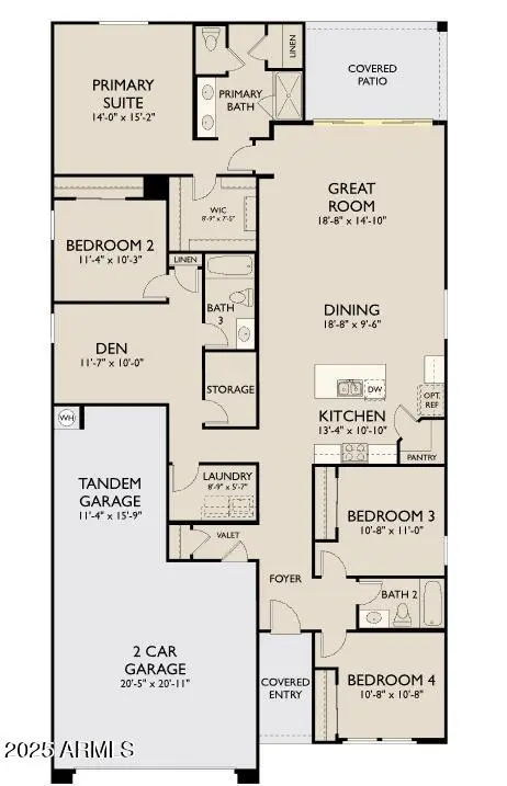 Brand new community in North Peoria! This stunning single story home offers 2,150 sq ft of functional living space. It features 4 bedrooms, 3 bathrooms, den, and a 3-car tandem garage. The open concept kitchen is perfect for entertaining and features a large Island, walk-in pantry and stainless steel appliances with gas range. It also offers our Oxford Collection which includes Espresso 42'' cabinets, quartz kitchen countertops, tile kitchen backsplash, and 8x36 wood look tile in all the common areas. The great room offers a 4-panel center sliding glass door so you can step out onto your covered patio to enjoy indoor/outdoor living. This home also features a paver driveway, 8-foot interior doors, soft water loop, all appliances, and blinds! Great location close to dining, freeways,