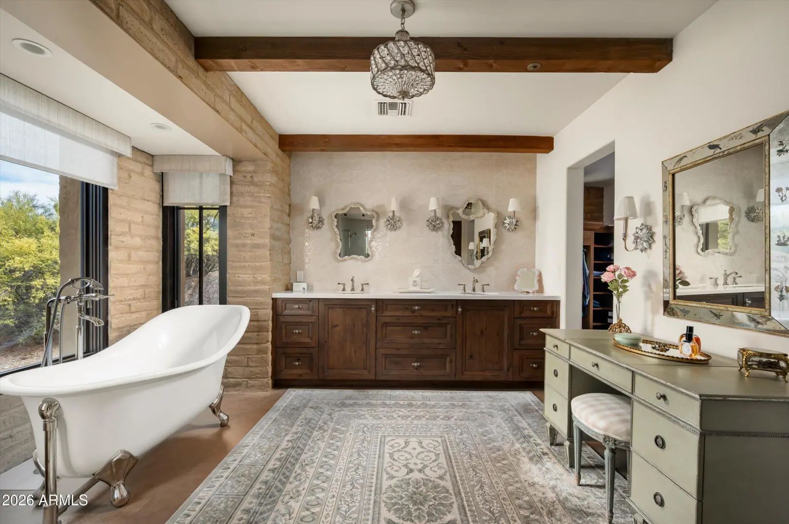 Rooted in the traditions of the Sonoran Desert and inspired by the design legacy of Bill Tull, this authentic adobe residence offers a rare expression of craftsmanship, materiality, and quiet luxury. Designed by Masters of the Southwest award-winning architect Clint Miller, this adobe built home reflects a seamless integration of architecture and environment. Authentic adobe construction, rich natural finishes, and French doors create effortless indoor-outdoor living. Set on a private 1.75-acre homesite in guard-gated Sincuidados, surrounded by boulders and mountain views, the property offers exceptional privacy. With a detached casita, this is a truly collectible desert residence. The neighboring adobe residence was created in 1986 by the late artist and designer Bill Tull